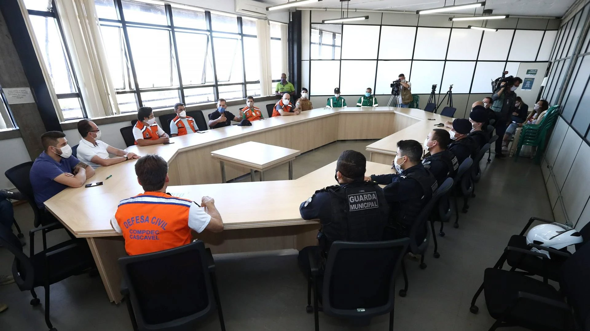 “Não podemos relaxar no cumprimento do decreto municipal. As pessoas precisam entender que ainda estamos na luta contra o coronavirus”. A orientação foi feita pelo prefeito Leonaldo Paranhos, que participou na manhã de hoje (25) da reunião com as forças de segurança formadas pelas polícias Civil, Militar, Guarda Municipal, Território Cidadão, Cettrans/Transitar e Defesa Civil. O encontro aconteceu para que fossem definidos os detalhes da operação de contenção, distanciamento e fiscalização no comércio e nas ruas de Cascavel.
