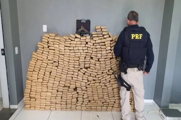 A Polícia Rodoviária Federal (PRF) apreendeu, na manhã desta sexta (23), 591,78 quilos de maconha e uma pistola 9 mm de origem croata, em Laranjeiras do Sul (PR). Traficante foi preso.