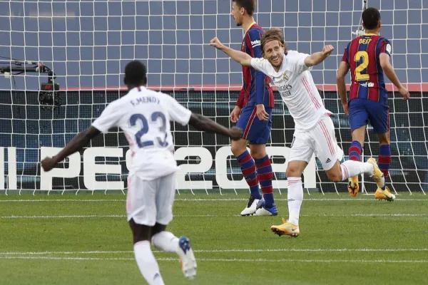 A equipe catalã ficou sem forças no segundo tempo, e o Real perdeu duas grandes chances de selar a vitória, até que Luka Modric, que veio do banco de reservas, fechou o placar nos acréscimos.
