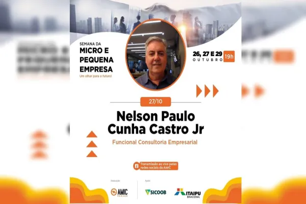 O tema da live de hoje será sobre “Oportunidades para o Microempresário” com Nelson Paulo Cunha Castro Junior, da Funcional Consultoria Empresarial. Para acompanhar a palestra, basta acessar, às 19h, a página do Facebook da AMIC Paraná: facebook.com/amicparana. Não é preciso realizar inscrição para participar do evento.