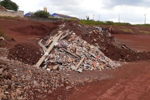 Onde de fato, na R. Sócrates encontra-se vários depósitos de entulhos e restos de massa asfáltica. Já a Secretaria de Meio Ambiente afirma que os entulhos não são usados na obra da Rua Pedro Gurgacz; "Todo material que não será reutilizado será destinado para o Aterro".