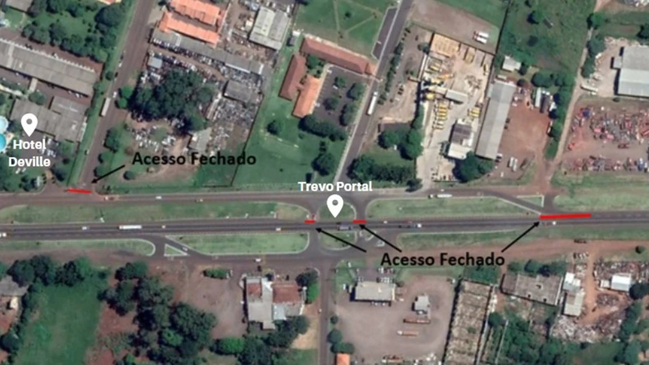 Os acessos para a via marginal da BR-277 localizada próximo ao quilômetro 586 (trevo da Portal), em Cascavel estarão bloqueados para o tráfego de veículos durante a tarde de sábado (21) e durante todo o domingo (22).