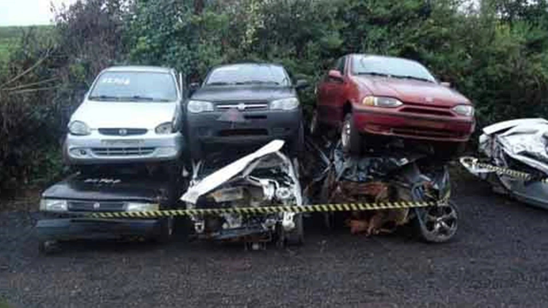 As sucatas não podem ser comercializadas ou circularem em via pública, devendo ser destinadas exclusivamente para desmonte e reaproveitamento de peças e partes metálicas. As placas dos veículos e suas baterias já foram retiradas pelo DER.