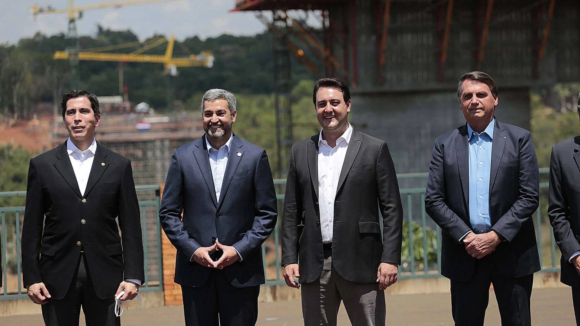 O presidente Jair Bolsonaro e o presidente do Paraguai, Mario Abdo Benítez, vistoriaram a obra, acompanhados pelo governador Ratinho Junior...
