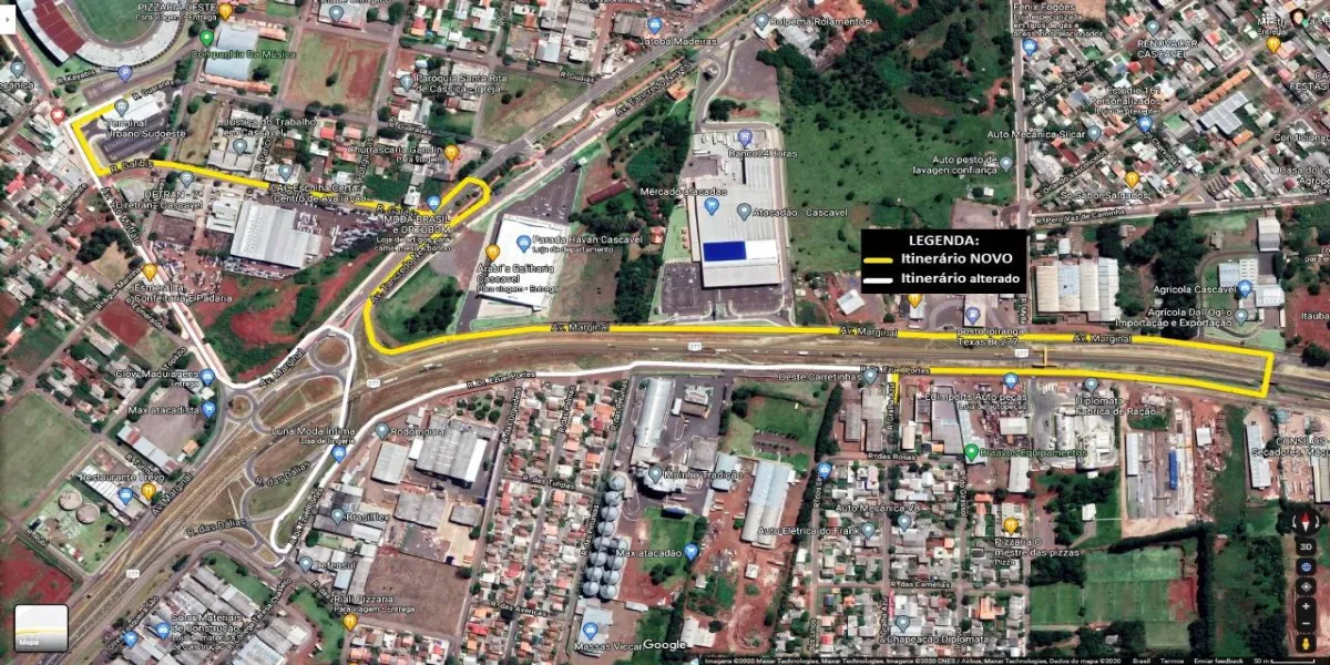 Novo itinerário - Rua Gralha Azul; Marginal BR-277 (Sentido Curitiba); Contorno Viaduto; Marginal BR- 277 (sentido Foz); Av. Tancredo Neves; Contorno; Av. Tancredo Neves; Rua Galibis; Av. Tito Muffato; Terminal Sudoeste.