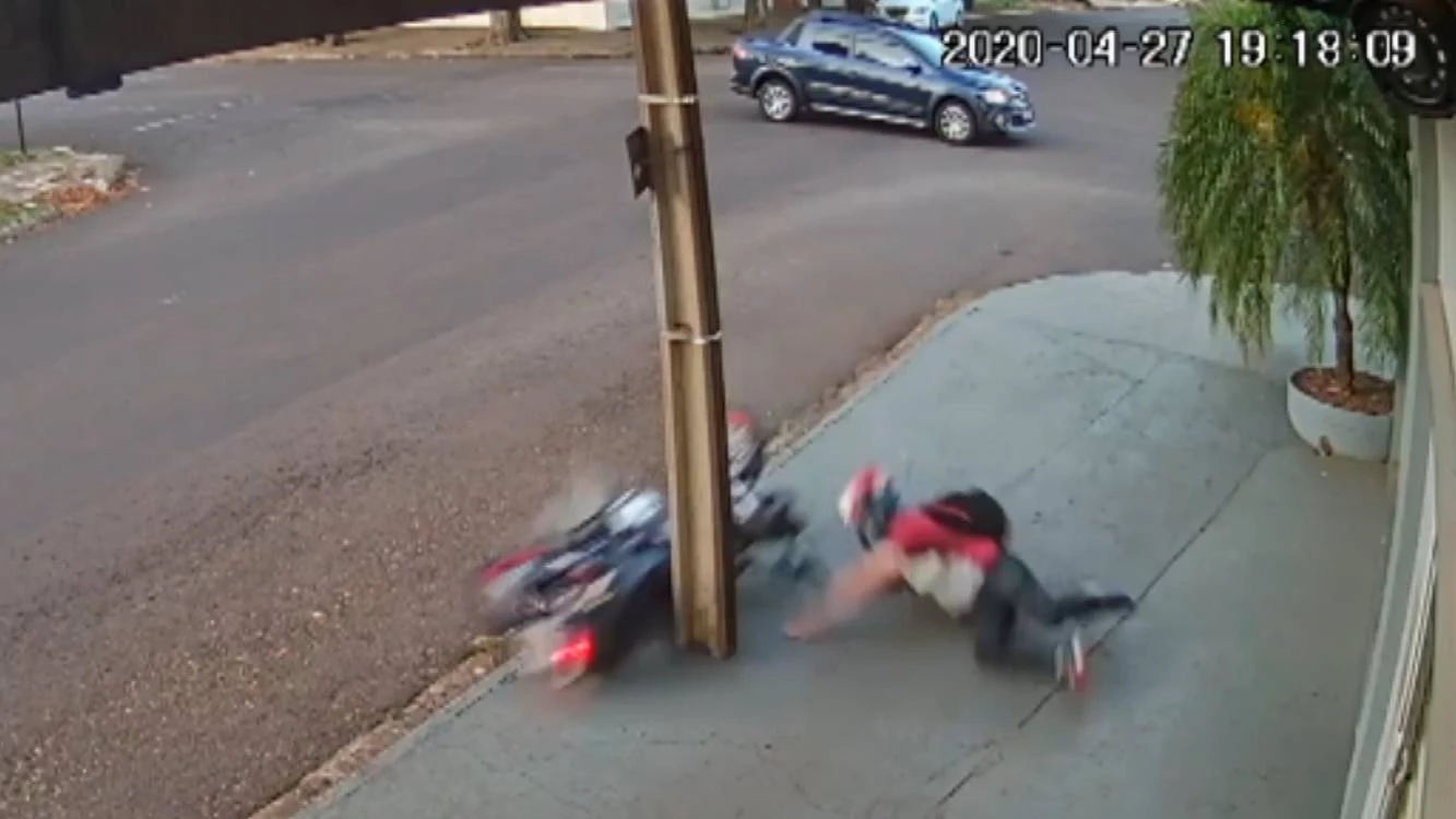 Motociclista ‘tira fina’ de poste após acidente no Bairro São Cristóvão