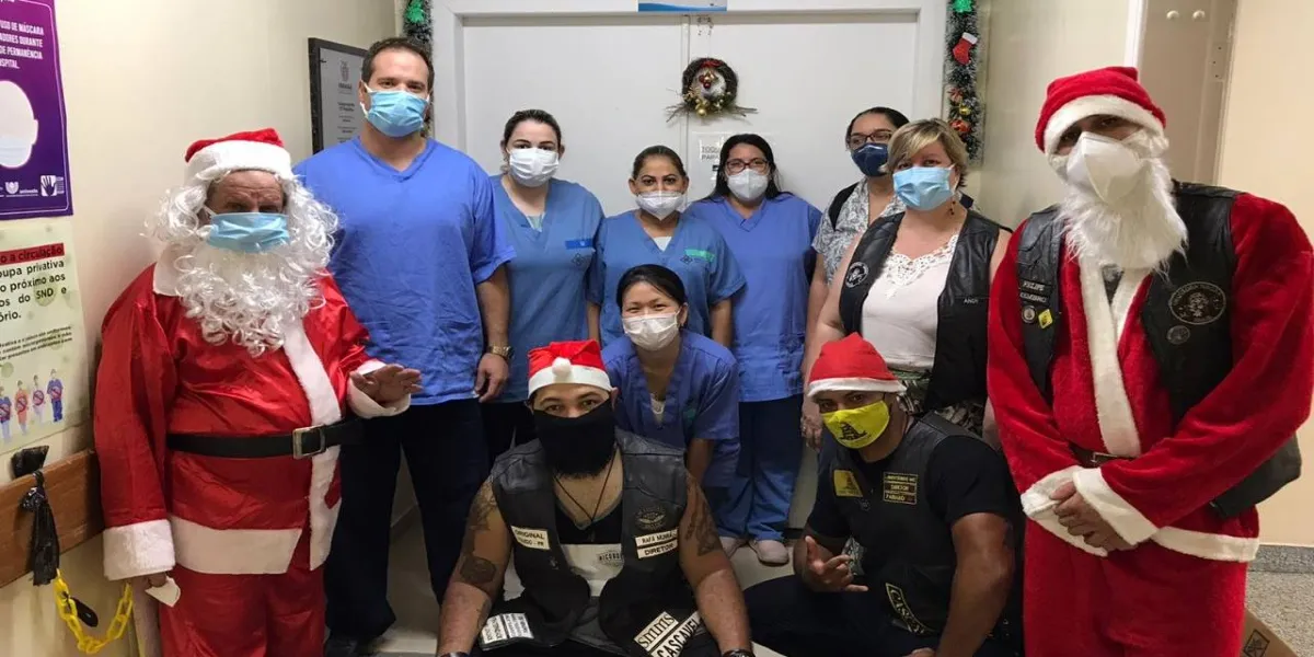 Mas quem não pode sair do quarto também não ficou sem a visita do Papai Noel. A entrega dos presentes foi para todas as crianças internadas na instituição, na ala pediátrica, UTI Pediátrica, Unidade de Cuidados Intermediários (UCI), e UTI Neonatal. “É um momento muito especial para todos que estão internados. Tomamos todos os cuidados devidos por conta da pandemia, e acredito que isso vai proporcionar um Natal mais feliz e alegre para as crianças. Programações como essa ajudam também no tratamento das crianças, elas aceitam melhor. Só temos a agradecer a todos os motoclubes que participaram dessa ação”, comenta o diretor geral do Huop, Rafael Muniz de Oliveira.
