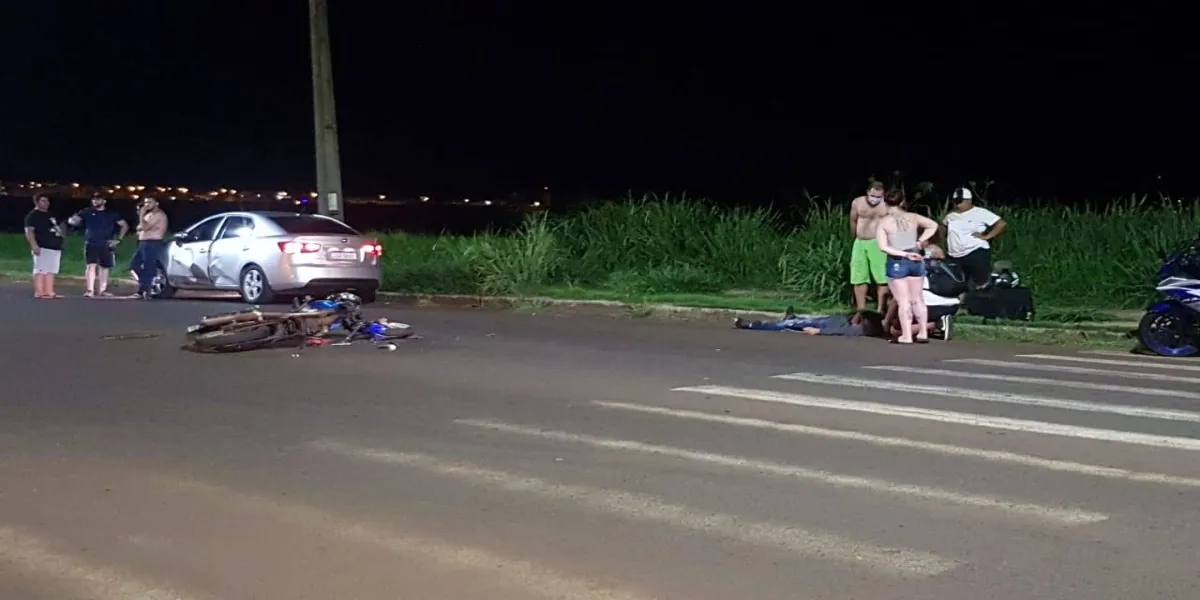 Um motociclista ficou ferido na noite desta quarta-feira (23), após se envolver em uma colisão de trânsito no Loteamento Clarito em Cascavel.