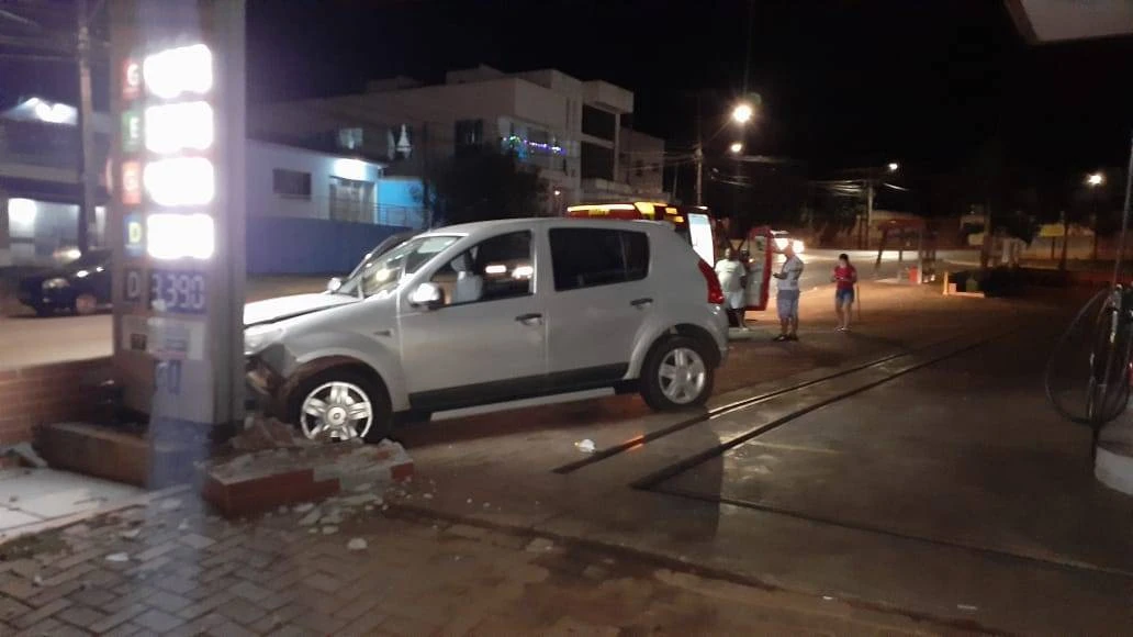 Ainda após a batida, o carro entrou dentro de um posto de combustíveis, parando somente após bater contra uma mureta de sinalização da empresa.