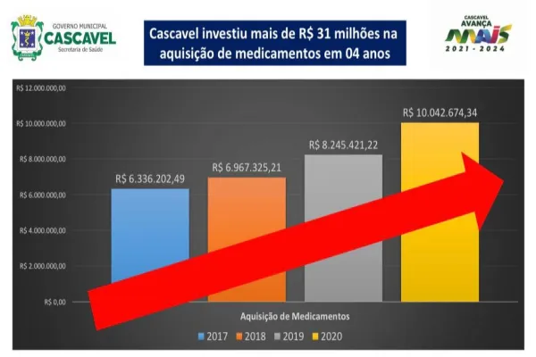 Em balanço promovido pela Divisão de Gestão de Insumos da Secretaria de Saúde, em 2017, o município adquiriu R$ 6.336.202,46 em medicamentos. Ao final da gestão, em 2020, foram comprados R$ 10.042.674,34 em remédios, chegando a marca histórica de mais de R$ 31 milhões em investimentos.