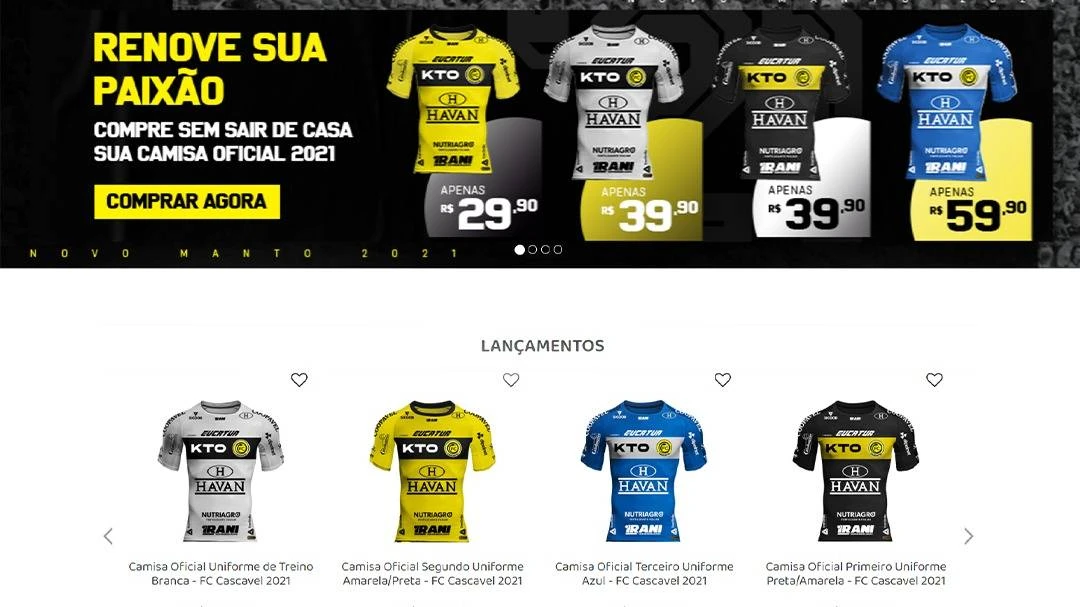 Assim como na temporada passada, a diretoria do Futebol Clube Cascavel continua investido na estratégia de aproximar os torcedores do clube. Uma das políticas adotadas pelo time que vem fazendo muito sucesso entre os apaixonados pela Serpente Aurinegra são as camisas oficiais da equipe, que podem ser adquiridas por um preço acessível e popular, com valores entre R$29,90 e R$ 59,90.