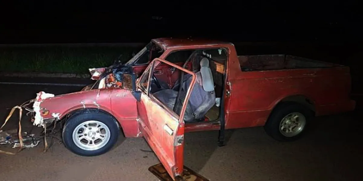 Com a forte batida, um homem e seu filho de 9 anos que empurravam o Verona, acabaram sendo atropelados pela picape....