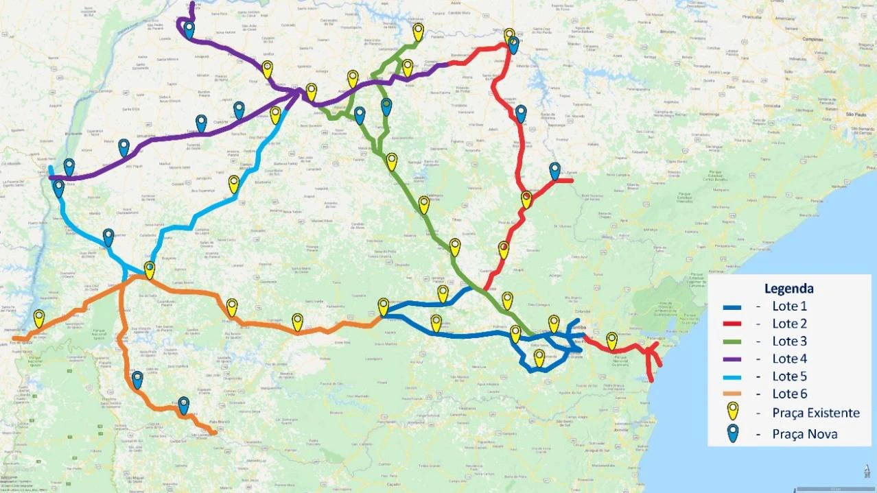 O estado do Paraná, que atualmente possui 27 praças de pedágio, passará a totalizar 42 em breve, após o leilão das concessões que irá ocorrer ainda este ano. A adição de 15 novas praças está prevista no estudo feito pela Empresa de Planejamento e Logística S.A (EPL) e discutido juntamente com o Ministério da Infraestrutura, ao qual a reportagem do jornal Diário dos Campos e portal dcmais teve acesso.
