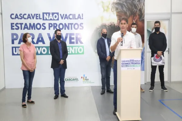 O prefeito de Cascavel, Leonaldo Paranhos, recomendou, na manhã desta quarta-feira (20), que as pessoas deixem de ouvir os negacionistas que tentam desqualificar a vacinação e as ações de combate à Covid-19. “A vacina é a luz, a ferramenta que nos dá mais otimismo”, disse, durante o ato simbólico que marcou as primeiras vacinações contra o vírus em Cascavel.