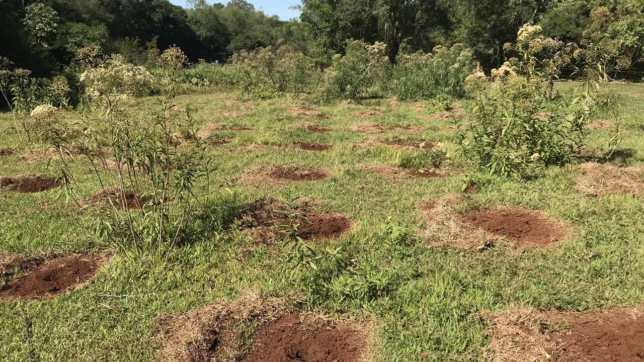 Compensação - Um dos plantios realizados em 2020 foi na Vila A, em uma área degradada na borda de um fragmento florestal de cerca de 100 hectares. Em maio, uma equipe da Itaipu começou o plantio de 2.700 mudas de árvores nativas para atender à compensação ambiental devido ao corte de árvores para a implantação de uma ciclovia naquela região.