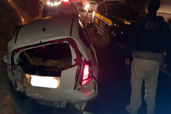 Enquanto fugia, o motorista trafegou em alta velocidade pela rodovia, ultrapassando carros pela direita, pelo acostamento e sem atenção, colocando todos os motoristas e pedestres risco. A perseguição durou cerca de três quilômetros, quando o motorista perdeu o controle do carro e colidiu contra um barranco. Os policiais identificaram que, no carro, estavam dois homens (de 19 e 22 anos). Dentro do Fit, foram localizados 347 quilos de maconha que estavam no porta-malas e sobre o banco traseiro.