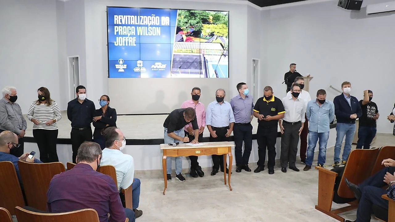 Localizada no Centro de Cascavel, a Praça Wilson Joffre passará por uma ampla revitalização para tornar o espaço mais atrativo. A ordem de serviço para o início das obras foi assinada na manhã desta sexta-feira (12) pelo prefeito Leonaldo Paranhos durante a Escola de Governo da Secretaria Municipal de Saúde (Sesau).