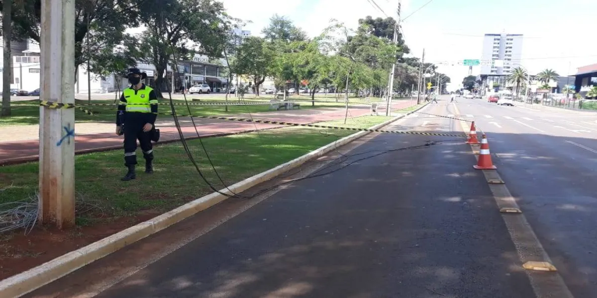 A Transitar foi acionada pelo Corpo de Bombeiros, que entrou em contanto comunicando que recebeu denúncias de que um caminhão estaria trafegando na via, rompendo vários fios e colocando em risco o tráfego dos demais veículos. Não foi possível identificar até o momento o autor do dano.