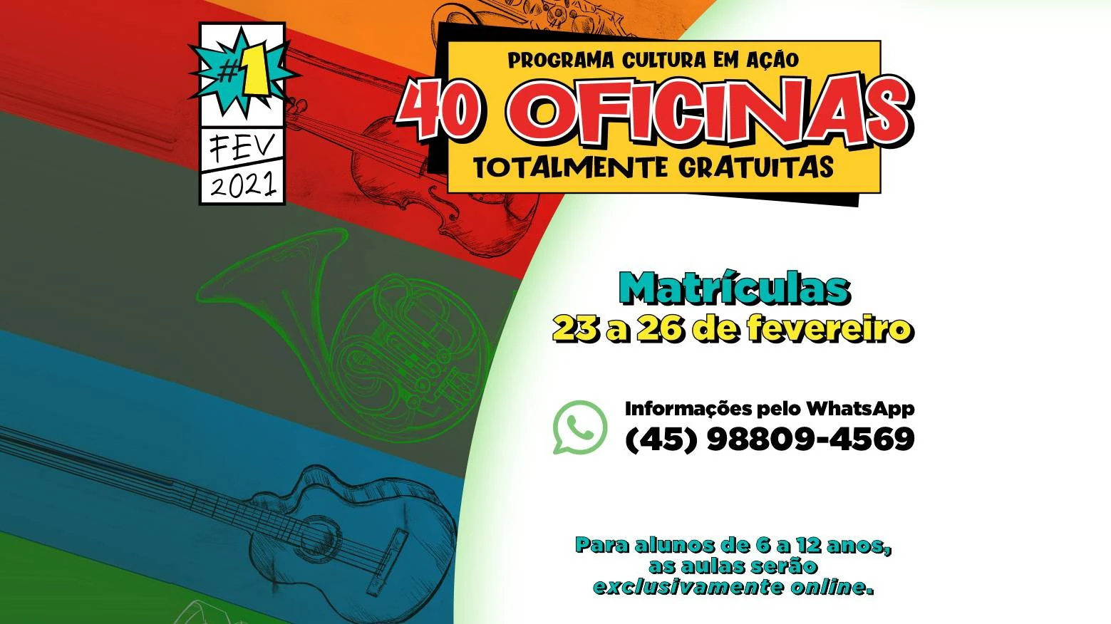 Novos alunos - Moradores que tem interesse em participar das oficinas gratuitas do Cultura em Ação em 2021 podem se inscrever entre 23 a 26 de fevereiro.