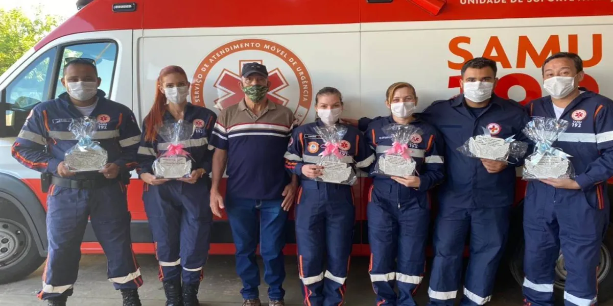 Hoje, 23/02/2021, o paciente e seus familiares foram até a base 01 do CONSAMU para agradecer e homenagear o trabalho das equipes que o atenderam.