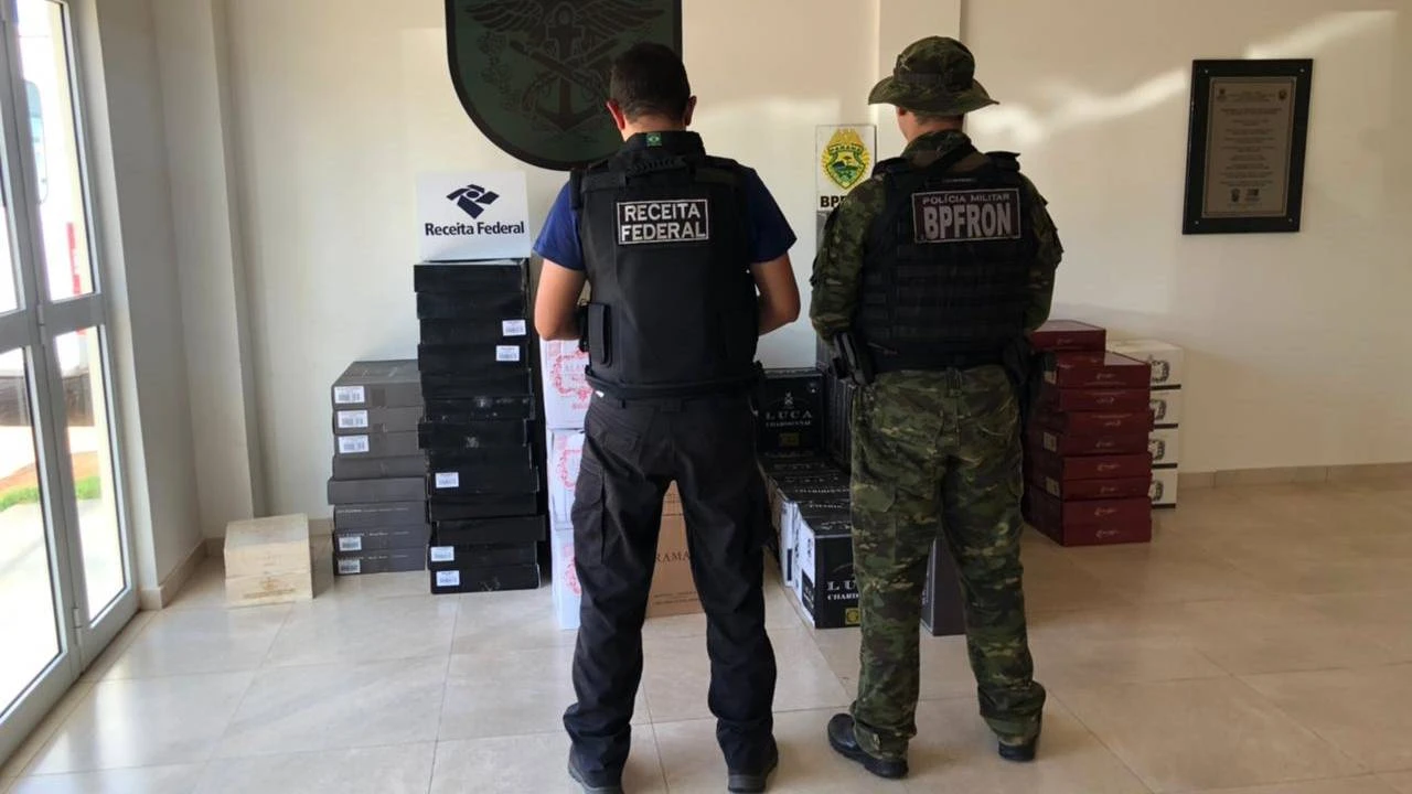 Em dado momento o condutor abandonou o veículo ainda em movimento e fugiu em meio a uma região de mata não sendo localizado. O veículo estava carregado com 700 garrafas de vinho de origem estrangeira sem os devidos processos de importação legal.