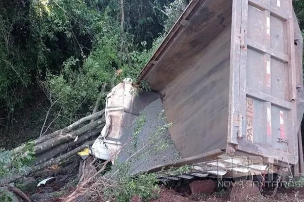 Por falta de freio caminhão de Marechal Rondon sai da pista e cai em barranco em Toledo