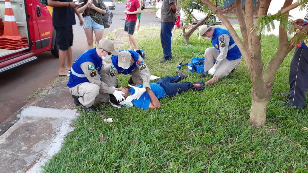 Motociclista sofre laceração profunda em perna após colisão de trânsito no Bairro Cataratas