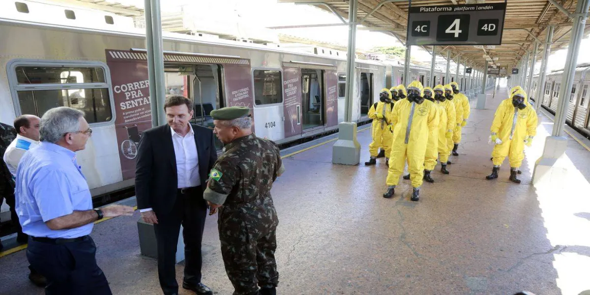 O prefeito do Rio de Janeiro, Marcelo Crivella, inspecionou neste sábado (28) o trabalho de desinfecção executado por militares das Forças Armadas no terminal Alvorada, na Barra da Tijuca, zona oeste do Rio. O serviço faz parte de uma parceria entre o Comando Militar do Leste, a prefeitura e a concessionária dos ônibus articulados BRT.