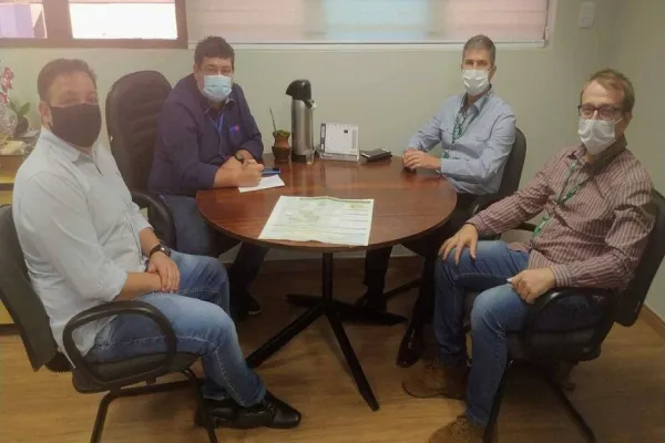 Acompanhado de Juliano Gallo, engenheiro agrônomo do Incra-Cascavel, e de Rogerio Magalhães, coordenador regional do núcleo municipal de Cascavel do Titula Brasil, Robson Bastos foi recebido pelo diretor geral da Amop, Vinicius Almeida.