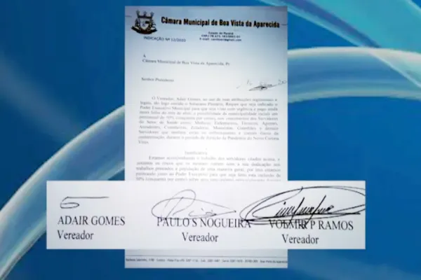 A indicação foi assinada por três vereadores da Oposição: Adair Gomes, Paulo Nogueira e Volmir Ramos...