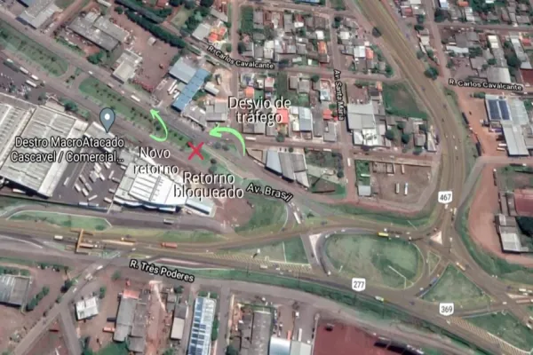 Retorno na Avenida Brasil sofrerá alteração No dia 19 de abril, está previsto o início das intervenções da obra do Trevo Cataratas com a Avenida Brasil, em Cascavel. Inicialmente, o último retorno, próximo ao trevo, será realocado cerca de 50 metros antes. O serviço é necessário, pois o retorno atual será interditado para a reconstrução do pavimento que neste período terão as pistas da Avenida Brasil ligeiramente desviadas para a rua Francisco Ignacio Fernandes, também para a reconstrução e reforço do pavimento existente. Tais serviços serão necessários para a ligação da rua Francisco Ignacio Fernandes, no Bairro Cataratas, com a alça de acesso à BR-277, que futuramente será utilizada como desvio para a execução da obra de implantação dos viadutos.