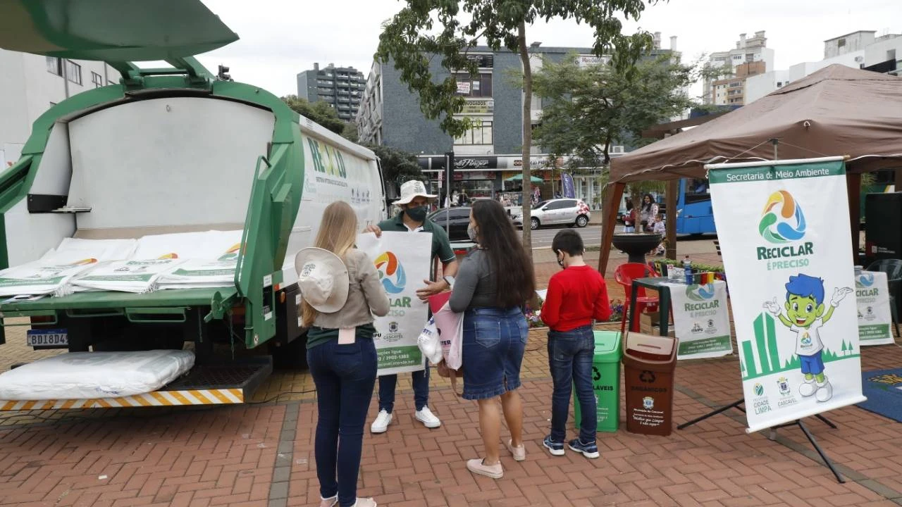 A Secretaria de Meio Ambiente realizou, na manhã deste sábado (24), uma ação no calçadão da Avenida Brasil, no centro de Cascavel. Quem passou pelo local recebeu bolsas de ráfia como forma de incentivar a coleta seletiva. Além disso, a população foi orientada sobre os dias da coleta em cada bairro da cidade.