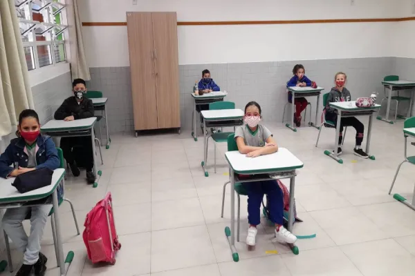 Para hoje retornaram seis turmas de 3º a 5º ano e um total de 55 alunos para cada período estava previsto. Na segunda-feira (3) está previsto o retorno das demais turmas, do Infantil ao 2º ano e igualmente metade dos alunos frequentará pela manhã e a outra metade irá à tarde. Nesta comunidade praticamente 100% das famílias optou pelo retorno presencial.