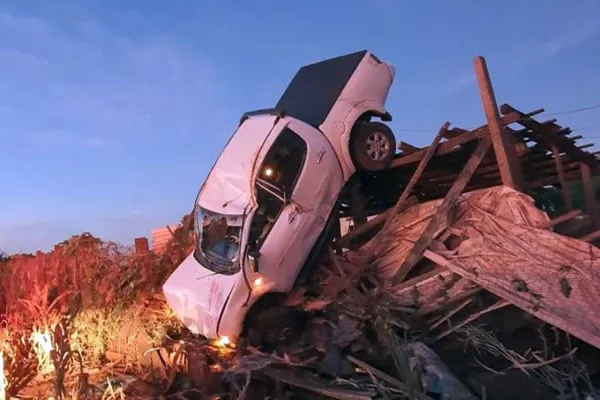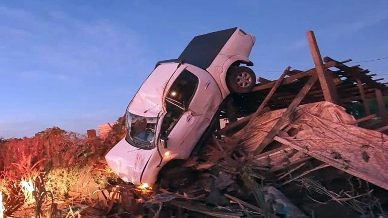 A equipe foi atrás, mas só voltou a localizar o veículo, quando já estava capotado em Linha São Salvador, no município de Toledo. A caminhonete teria pulado um quebra-molas e saído da pista, caindo logo em seguida em cima de um barracão. O motorista foi ejetado e jogado para fora do automóvel.